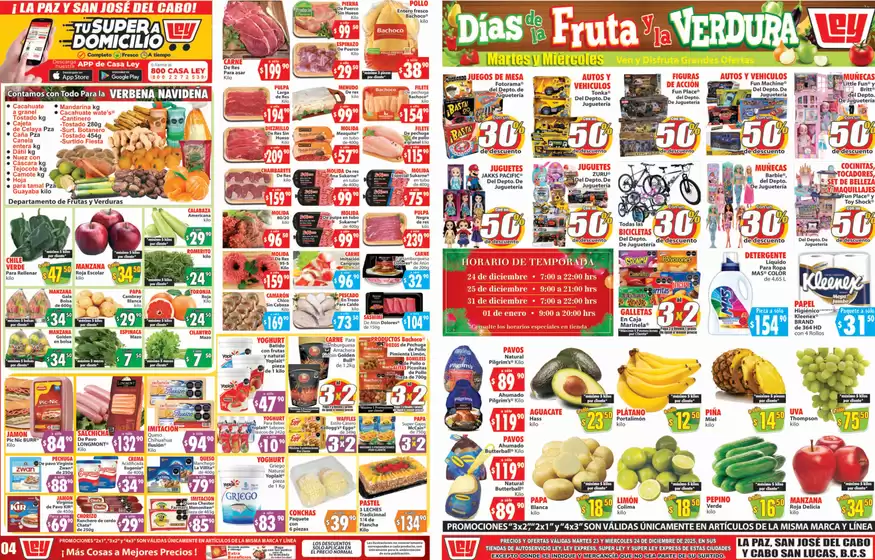 No pierdas la oportunidad de visitar la tienda de Casa Ley en Clzda. Forjadores de Sudcalifornia esquina con Estado 30 para disfrutar de una experiencia de compra completa. Te invitamos a explorar las promociones que tenemos para ti este diciembre y mantenerte informado de las mejores ofertas de Casa Ley en La Paz. ¡Visítanos y empieza a ahorrar hoy mismo!