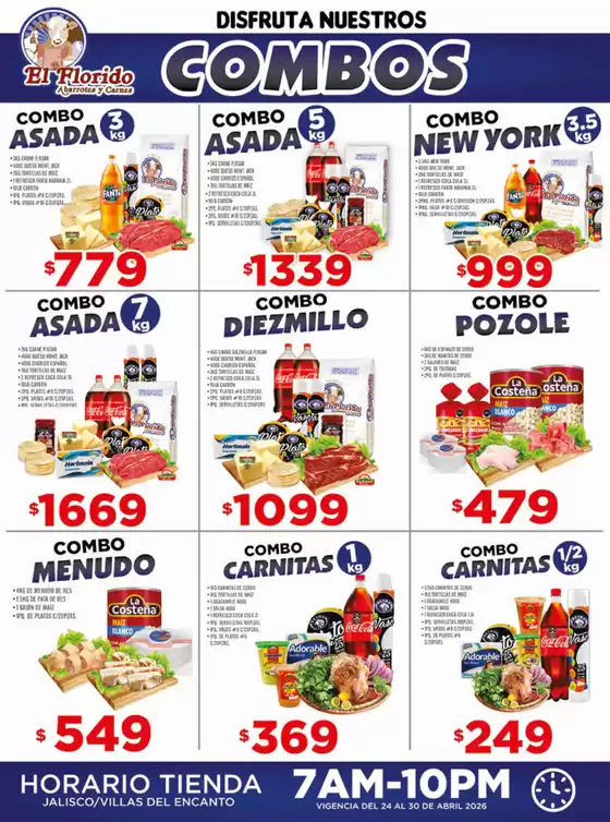 En El Florido encontrará atractivos combos de diferentes carnes, en los que podrá escoger el que más le convenga, entre ellos, Combo Pozole, Combo Asada 3 Kgs., Combo Menudo, Combo Arrachera, Súper Combo Asada 7 Kgs, entre otros. Además de una extensa variedad de abarrotes de alta calidad.