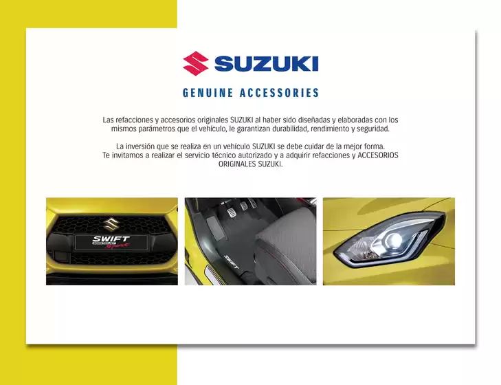 Si el automóvil de sus sueños es un Suzuki, no lo dude más, entre a https://www.suzuki.com.mx/ y descubra todo lo que Suzuki le puede ofrecer, cotice en línea el auto que más se adapte a sus necesidades y su estilo de vida, y acérquese a su sucursal más cercana, donde encontrará la mejor asesoría.